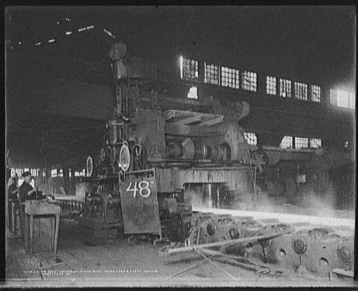 The Edgar Thomson Works, in Braddock, Pennsylvania (c. 1905). Many Slovak immigrant men worked at manual labor jobs, such as those in steel mills, coal mines, and foundries. Women most often either worked as domestic help or took in boarders at home. Courtesy: Prints and Photographs Division, Library of Congress, Washington, D.C. The 48-inch universal plate mill at the Homestead Steel Works, in Homestead,