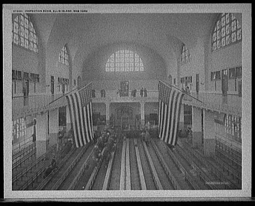 a long, and often uncomfortable, journey across the ocean. The Registry Room at Ellis Island, New York (c. 1915). An immigrant's